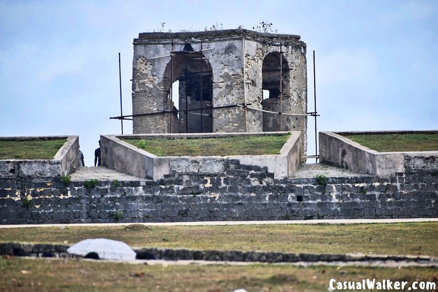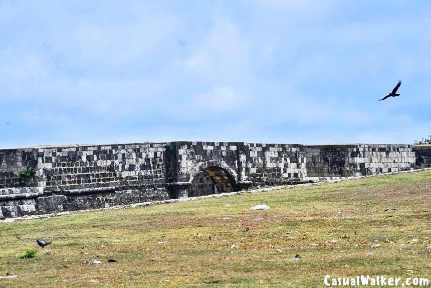 Comfortable shoes with a decent grip are non-negotiable — the terrain inside the fort is genuinely uneven, with worn stone pathways, rubble-strewn areas, and sloped rampart walls that require confident footing. Sunscreen, a refillable water bottle, and a wide-brimmed hat are equally essential given the exposed tropical heat. There are no food or drink vendors inside the fort itself, so come prepared.