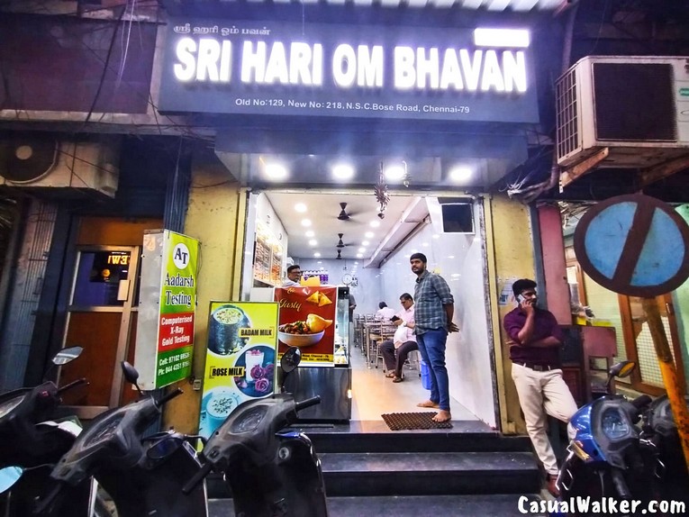 Address: Mint Street / NSC Bose Road area, Sowcarpet, Chennai (Sri Hari Om Bhavan listed on Zomato under Sowcarpet, South Indian cuisine)