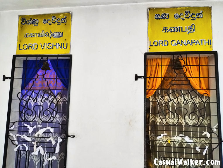 This devayal (deity shrine) exemplifies Sri Lanka’s unique Buddhist tradition where devotees pay respect to these Hindu gods before entering the main Buddha shrine, seeking blessings and protection for their spiritual journey.