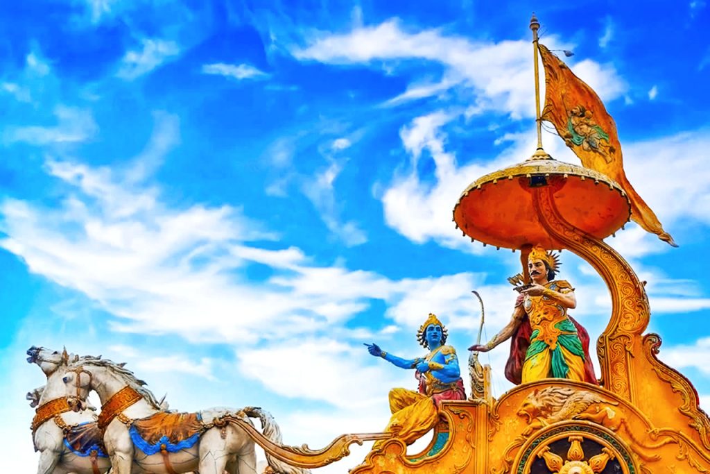 This spiritual text that takes the form of a dialogue between Prince Arjuna and his charioteer Krishna (revealed to be a divine incarnation) on a battlefield – Kurukshetra.