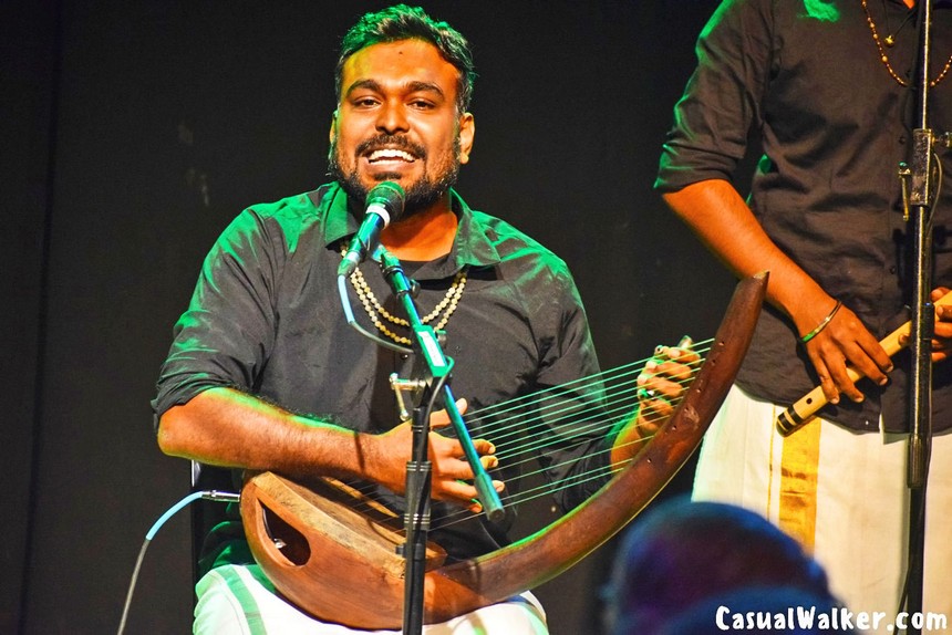 Among all the incredible performances this year, one ensemble has captured my complete attention: Uru Paanar. At the Rasoham Kutty Kutchery Festival, this contemporary Tamil music collective delivers a mesmerizing performance featuring ancient 2,000-year-old instruments from the Sangam Era—the Yazh (Yal), Parai, Kudamuzha, Kuzhal, Thudumbu, and Kombu. Through their debut album “Thol”—South India’s ancient sonic cartography—they present a traveling set of seven evocative songs. But true to the festival’s spirit, this isn’t just a performance. Their performance weaves together live music with conversations, stories, and reflections about how they’ve revived extinct instruments mentioned in Tolkāppiyam, bringing these ancient sounds back to life.
